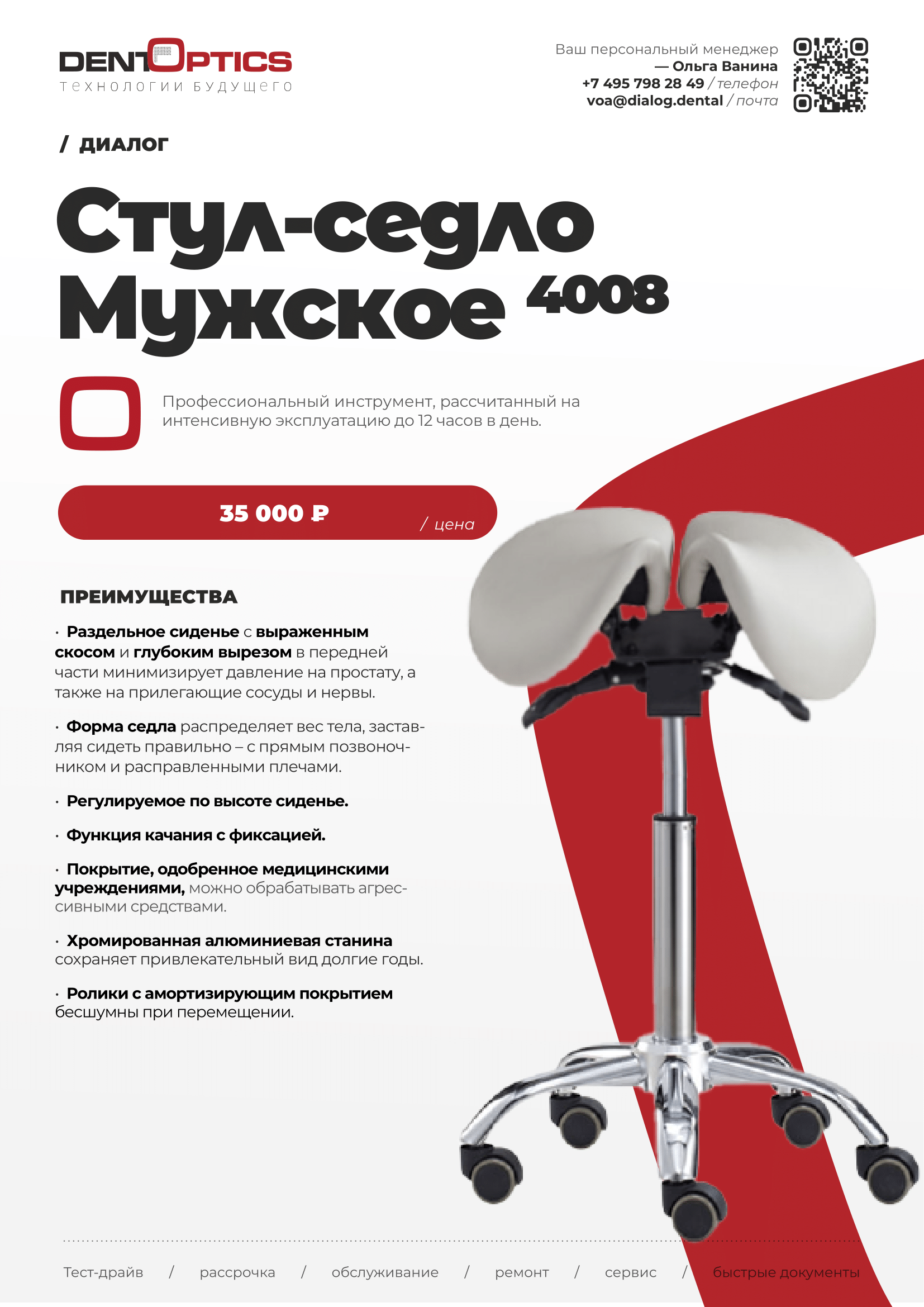 Создать КП Стул-седло мужской Диалог 4008
