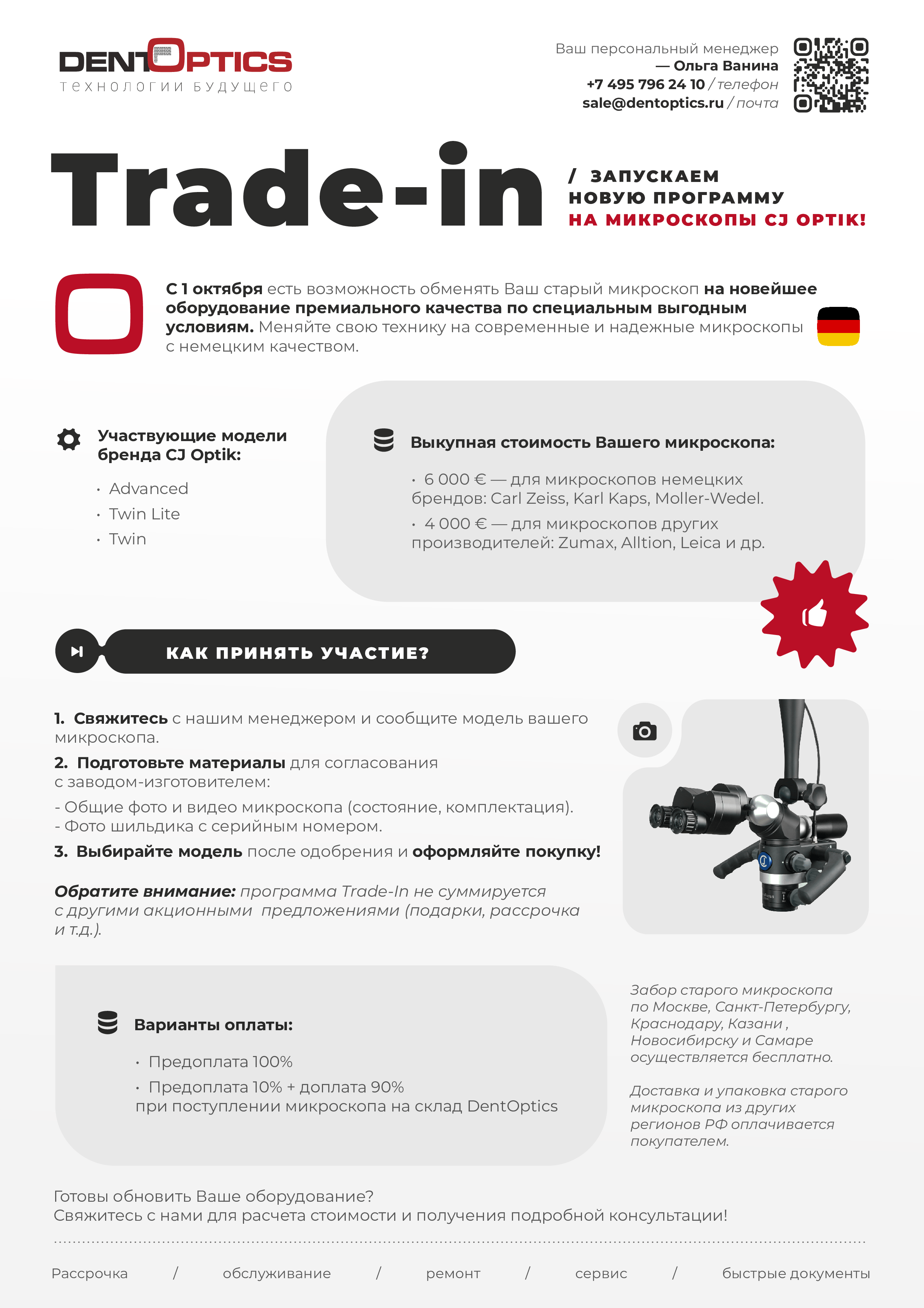 Создать КП Trade-in на микроскопы CJ Optik